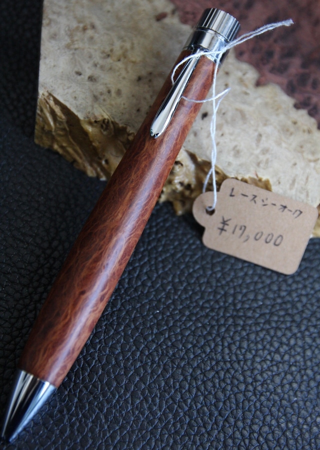 【品名】木軸ペン 【樹種】レースシーオーク 【サイズ】全長:133mm,軸径:14.8mm重量:約30g 【仕上げ】オイル艶あり 【木材の説明・ペンの説明】 シーオーク(She-oak)は、オーストラリア原産のモクマオウ科の希少な植物(木材)でオークとついていますが日本の樫や楢とは別物です。名前の「She」は「彼女のような美しさ」に由来し、独特の赤褐色と放射組織による美しい木目が特徴。非常に硬く堅牢で、加工するとレースのような模様が現れるため、高級木軸ペンや家具材として珍重される希少材です。 【付属品】 化粧箱 【金具・カラー】 KATO203・シルバー 【撮影機種】 Canon EOS 40D ※商品の購入についての注意点はショップの「ABOUT」をご確認ください