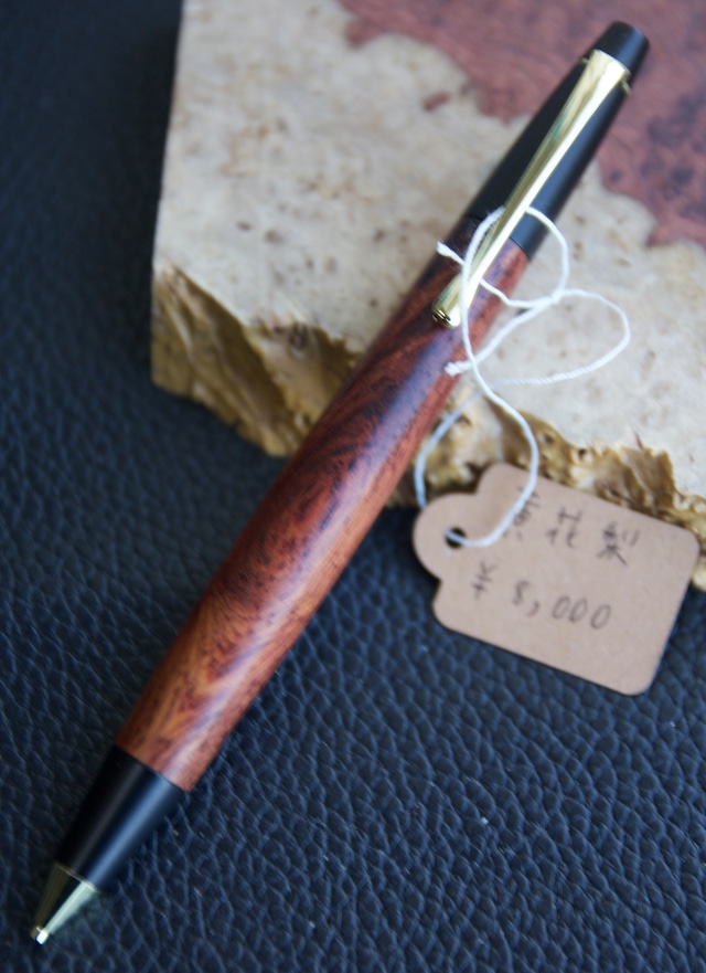 【品名】木軸ペン 【樹種】黄花梨 【サイズ】全長:138mm,軸径:13.6mm重量:約28g 【仕上げ】オイル艶あり 【木材の説明・ペンの説明】 黄花梨(おうかりん)は、主に中国で産出されるマメ科の高級銘木(香枝木)で、古くから明・清時代の最高級家具に使われてきた世界的な希少材です。非常に堅硬で美しい木目と香りを持ち、現在ではワシントン条約で保護され、入手不可能な絶滅危惧種として超高額で取引されています。 その希少性からか、某オークションサイト等で偽物が横行しており知らずに取引してしまっている方も多数おります。 当方は現地で直接取引して日本で銘木を販売しているバイヤー様から仕入れをしているため本品は本物だと思われます。 【付属品】 化粧箱 【金具・カラー】 KATO202・ゴールド 【撮影機種】 Canon EOS 40D ※商品の購入についての注意点はショップの「ABOUT」をご確認ください